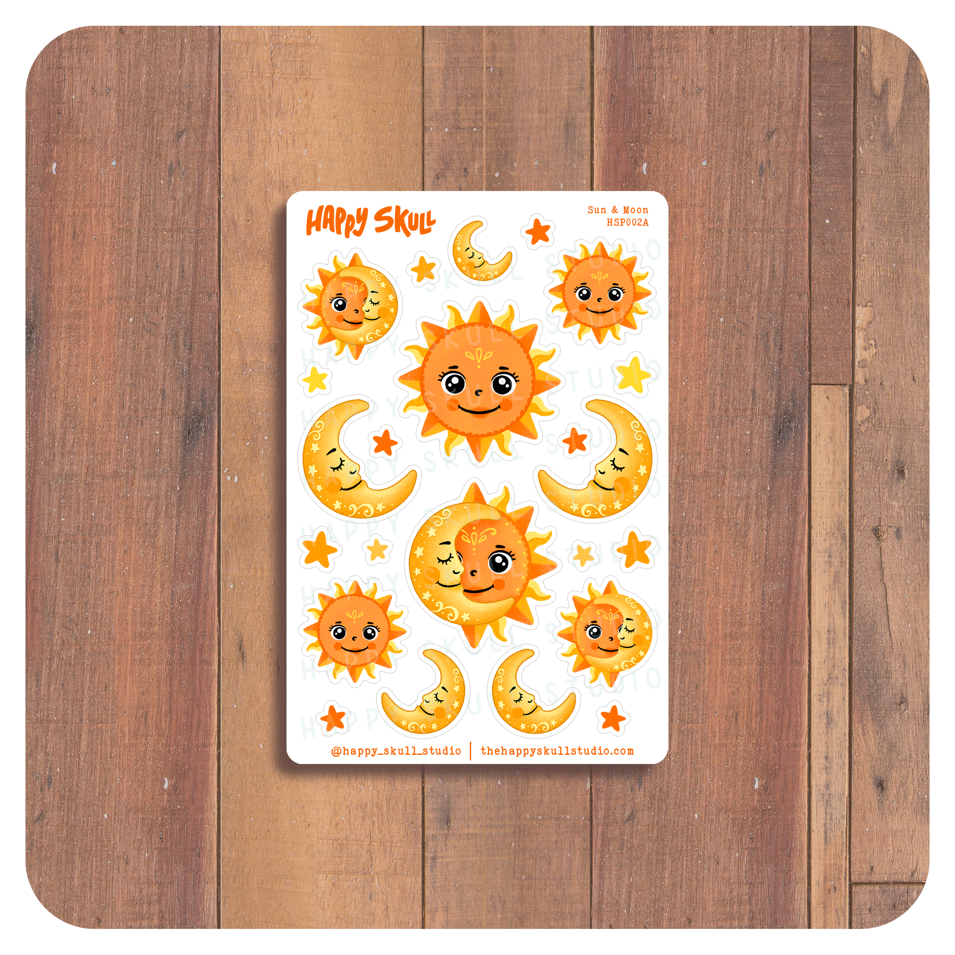 Sun N Moon is one of my first sticker sheet designs and still one of my favorites. This sheet includes stars, sun, and moons. Perfect for your journal and planner spreads.