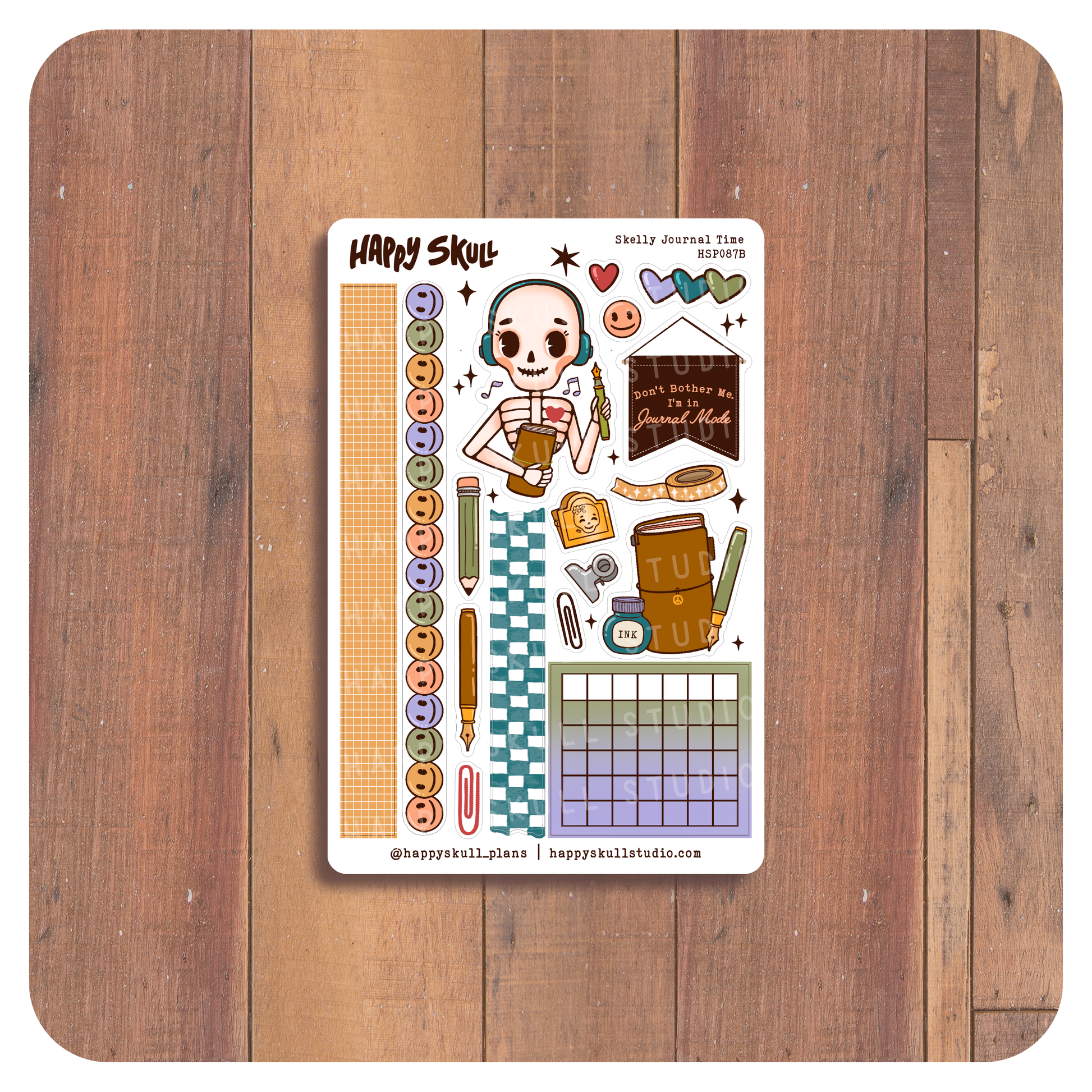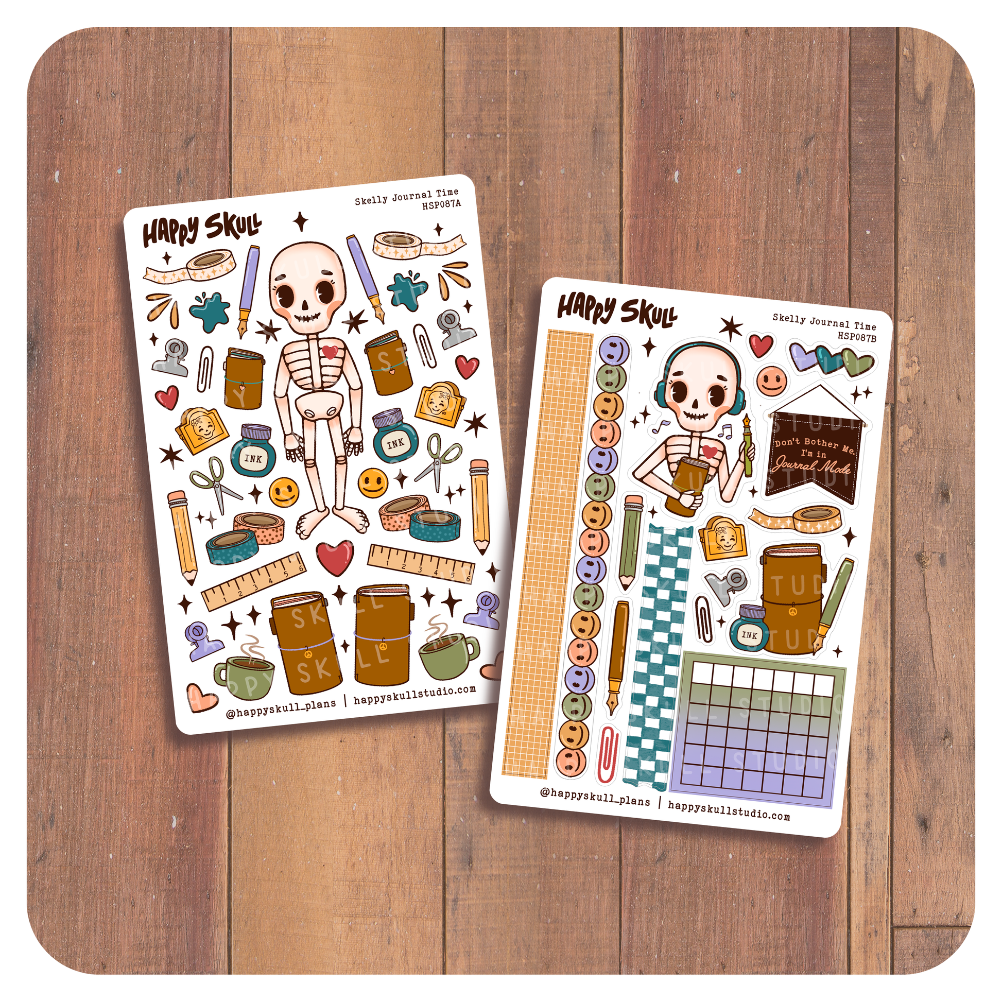 Skelly is back in a Journal Time collection! This 2 page deco kit has a bit of everything. Kit includes decorative elements, washi, and even a blank calendar. This collection also includes a 3", die cut sticker in a matte finish.