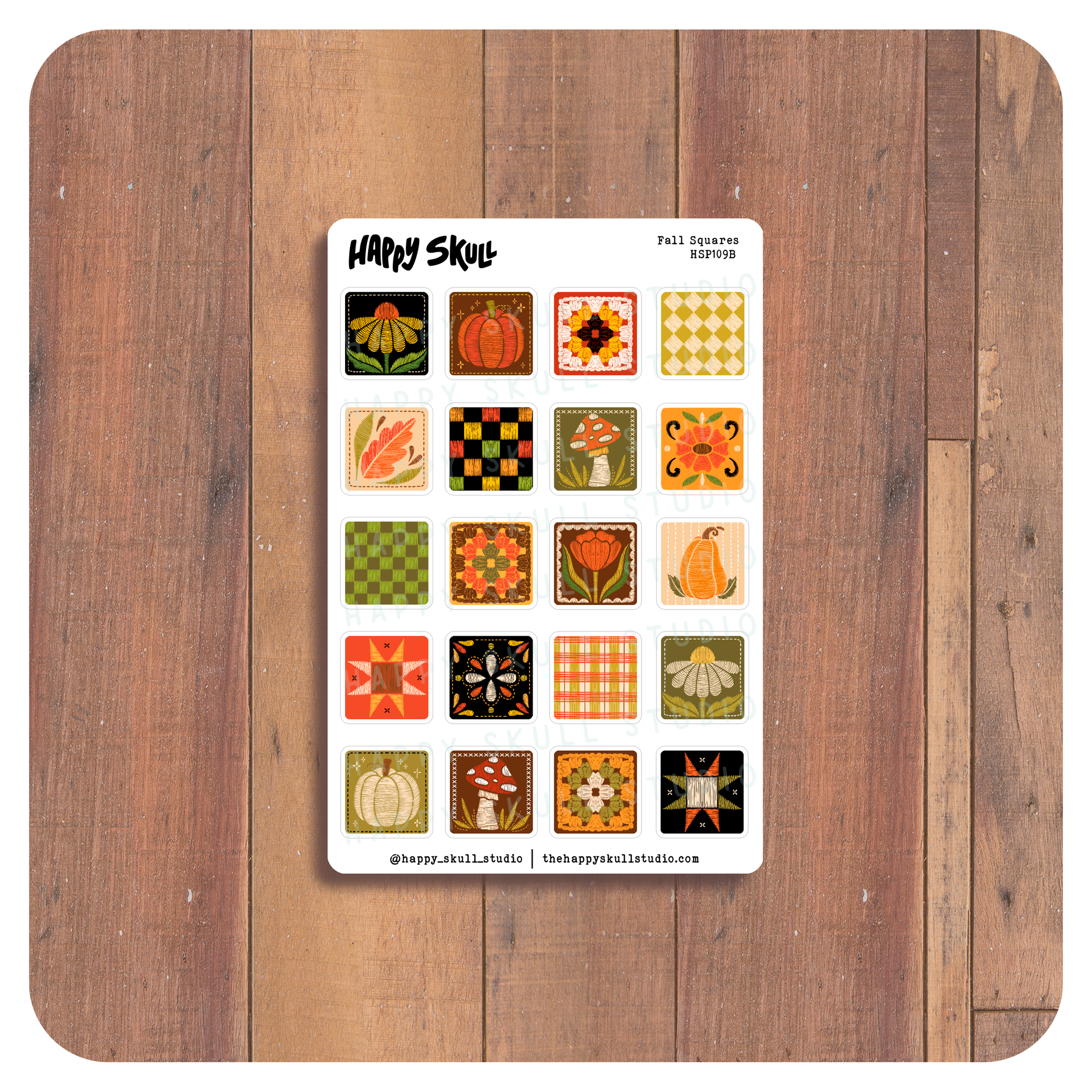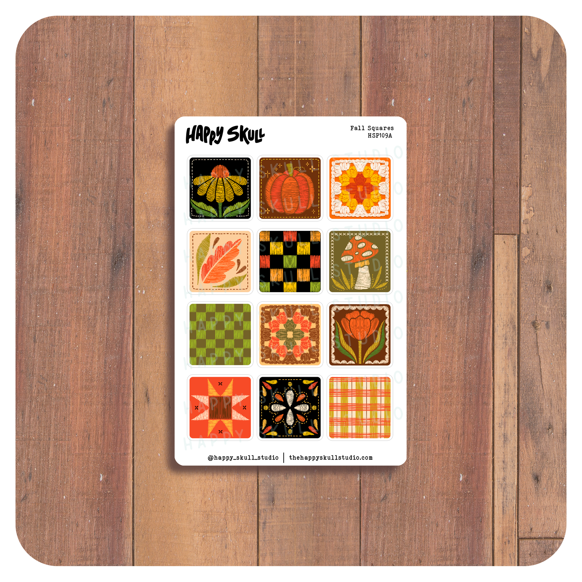 Fall Squares is a 2 page kit in beautiful, fall colors. Each square was designed using a faux embroidery look.