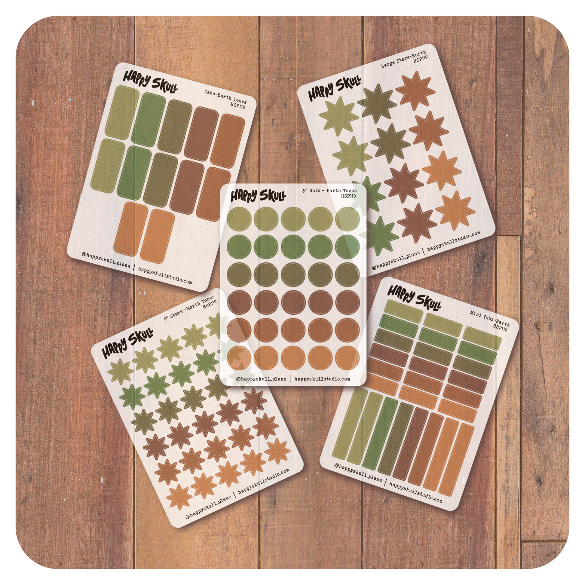 - 12 stickers in an earth tone palette